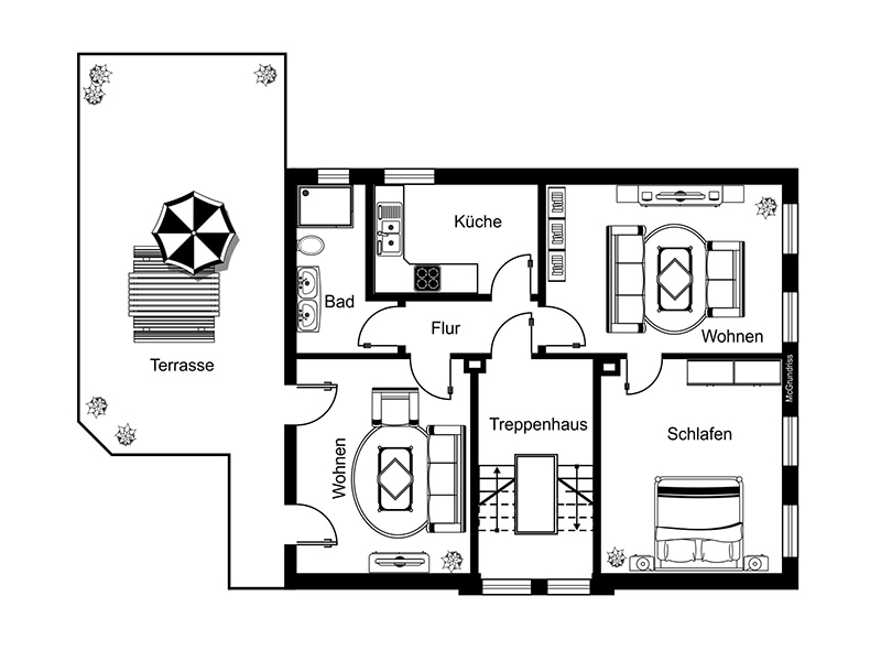 Südterrasse & große Dachterrasse – ideal für Erholung & Privatsphäre.