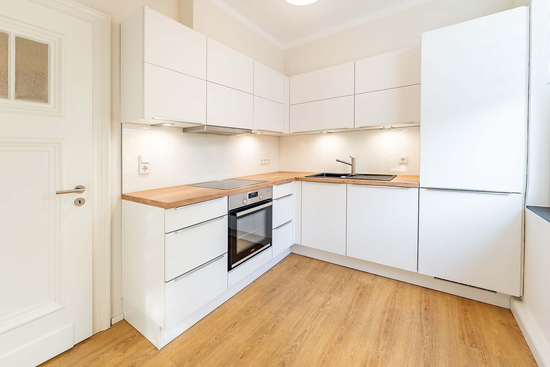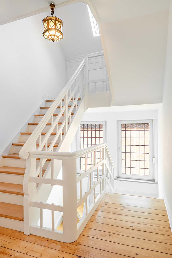 Die Erdgeschosswohnung bietet zudem einen barrierearmen Zugang, der den Komfort und die Alltagstauglichkeit deutlich erhöht. Das Erdgeschoss wurde 1998 umfassend saniert und um rund 30 m² erweitert. Das Obergeschoss erfuhr 2021 eine hochwertige Modernisierung, inklusive eines eleganten Tageslichtbads mit großformatigen italienischen Feinsteinzeugfliesen, einer modernen, grifflosen Einbauküche sowie geschmackvollen Designböden. Liebevoll aufgearbeitete Originalelemente wie die massive Holztreppe und die historischen Holztüren unterstreichen den besonderen Charakter des Hauses und schaffen eine warme, einladende Atmosphäre. Die Obergeschosswohnung ist aktuell freistehend und präsentiert sich in einem sofort bezugsfertigen, modernen Zustand.