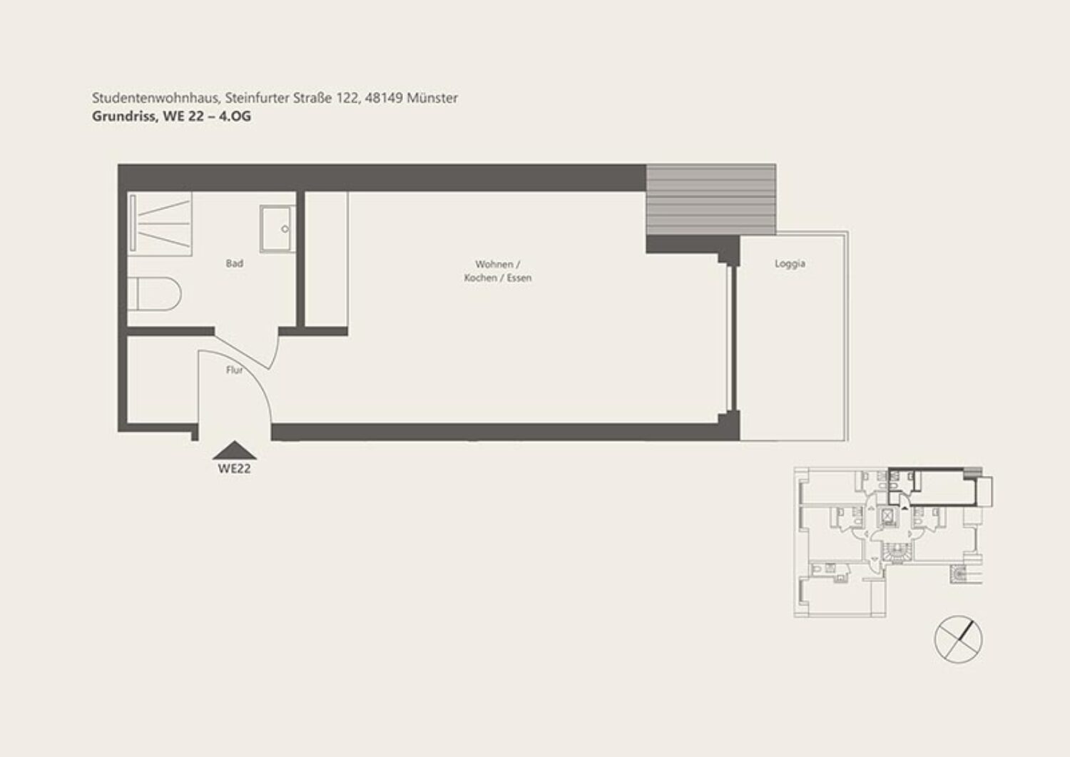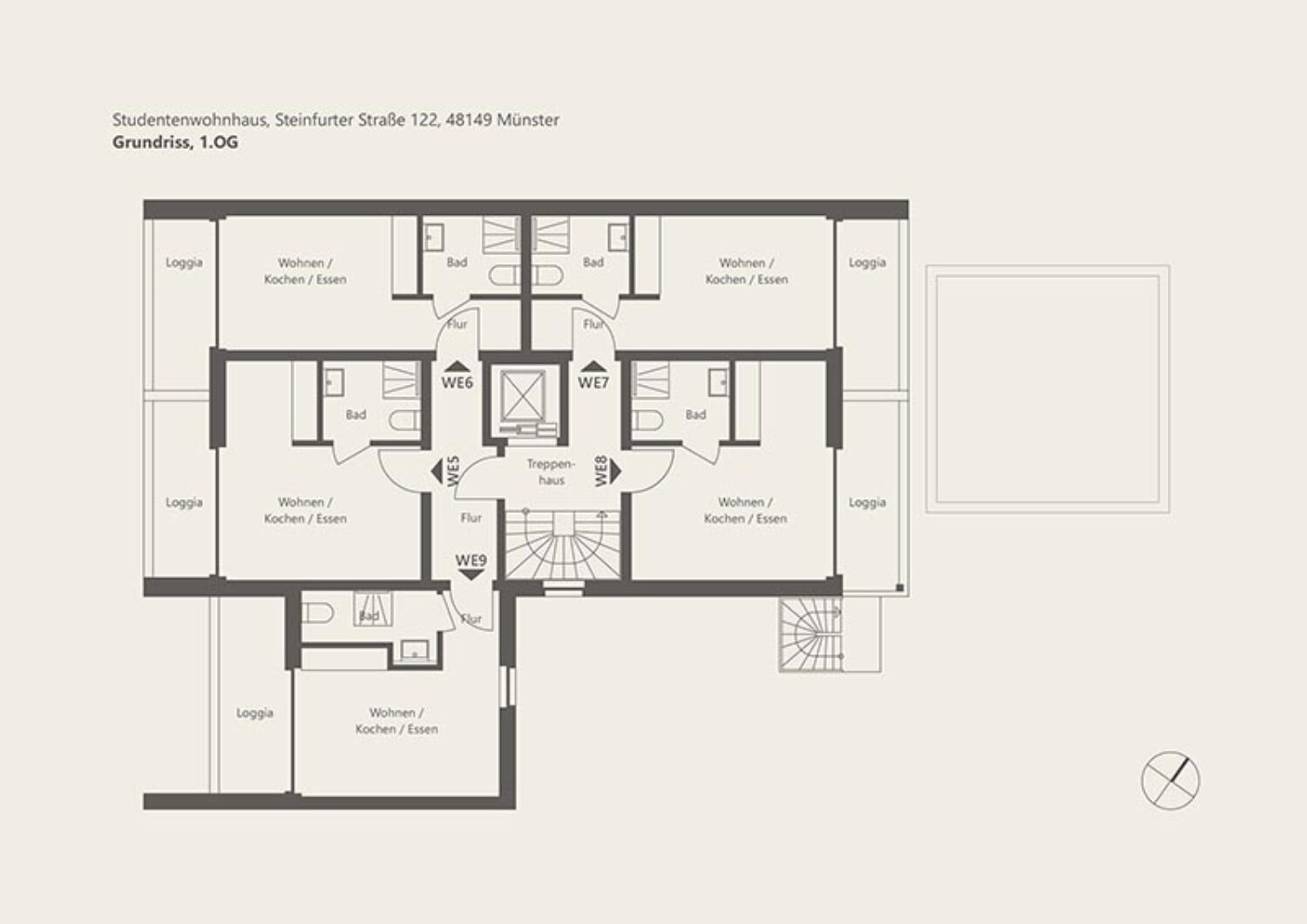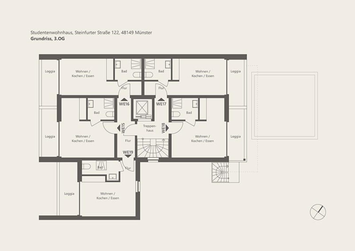 Der Neubau mit 25 Apartment-Wohneinheiten für Studentinnen und Studenten an der Steinfurter Straße 122 in Münster wird nach den strengen Anforderungen der Bundesförderung für effiziente Gebäude (BEG) als Energieeffizienzhaus 40 EE errichtet und setzt damit auf höchste Nachhaltigkeits- und Energiestandards.
