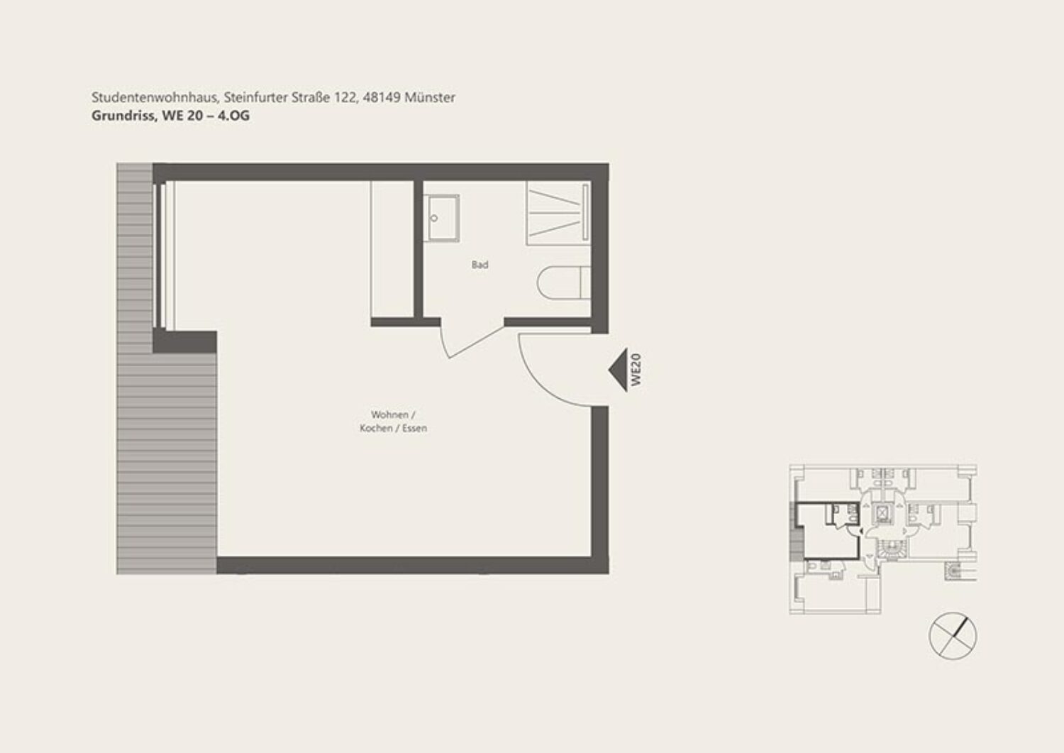 Lage und Umgebung: Die Lage des Neubaus direkt gegenüber dem Leonardo-Campus ist ideal für Studierende. Der LEO-CAMPUS bietet kreativen Raum für mehrere Fakultäten der Universität Münster, der FH Münster und für die Kunstakademie Münster. Zahlreiche Sport- und Grünflächen befinden sich in unmittelbarer Nähe zum pulsierenden studentischen Leben. Die ÖPNV-Anbindung als Alternative zum Fahrrad ist hervorragend. Neben 25 abschließbaren Fahrradstellplätzen stehen am Apartment-Wohnhaus auch vier Pkw-Stellplätze in einem Autostapler-System zur Verfügung.