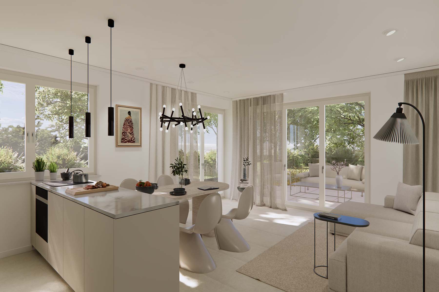 Am Merschkamp 12 entsteht ein modernes Mehrfamilienhaus mit stilvollen Eigentumswohnungen, das nach den anspruchsvollen Standards der Bundesförderung für effiziente Gebäude als KfW-Effizienzhaus 40 QNG realisiert wird. Die Kombination aus zeitgemäßer Architektur, energieeffizienter Bauweise und durchdachten Grundrissen schafft ideale Voraussetzungen für komfortables, nachhaltiges Wohnen in zentraler und zugleich naturnaher Umgebung.